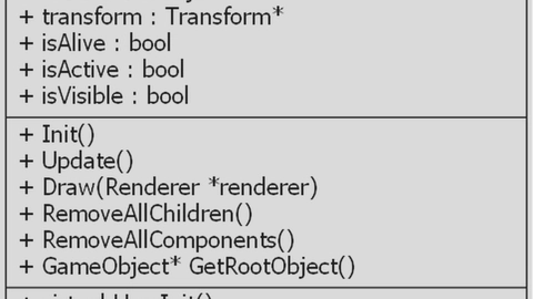 GameComponents also contain functions for drawing and updating. They are virtual functions, but only need to be overridden if being used – a component used solely for drawing on the screen doesn’t need to override and create an empty Update function just to keep the compiler happy.
