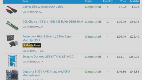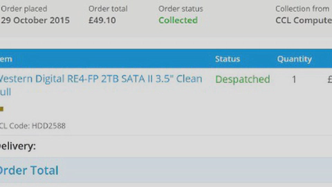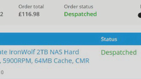 Here’s the original order for the hardware in my NAS. You’ll notice it has four Seagate desktop hard drives. I think they’ve all died now, most of them failing to power up after being switched off due to sticking spindles.