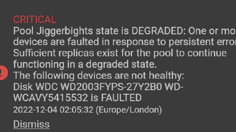 This is not a good thing to see on your NAS, but it’s also not immediately fatal. RAID is not a backup, but it is reassuring knowing one of my drives can die and the machine just carries on.